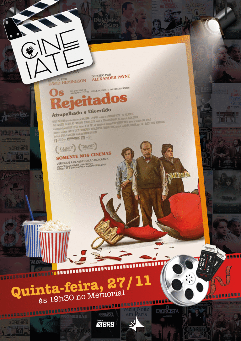 O Iate Clube de Brasília, por meio da Diretoria Cultural, convida os associados para mais uma sessão do Cine Iate, com o debate do filme ‘Os Rejeitados’, dirigido por Alexander Payne e estrelado por Paul Giamatti. O filme será exibido no dia 27 de novembro, às 19h30, no Memorial. O longa, indicado aos festivais de […]