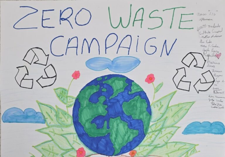 Com o planeta Terra e o Lago Paranoá no centro, lixeiras de reciclagem, colagens e diferentes texturas de tinta, as crianças do Centro Infantojuvenil do Iate (Ciate) entraram na campanha “Lugar de lixo