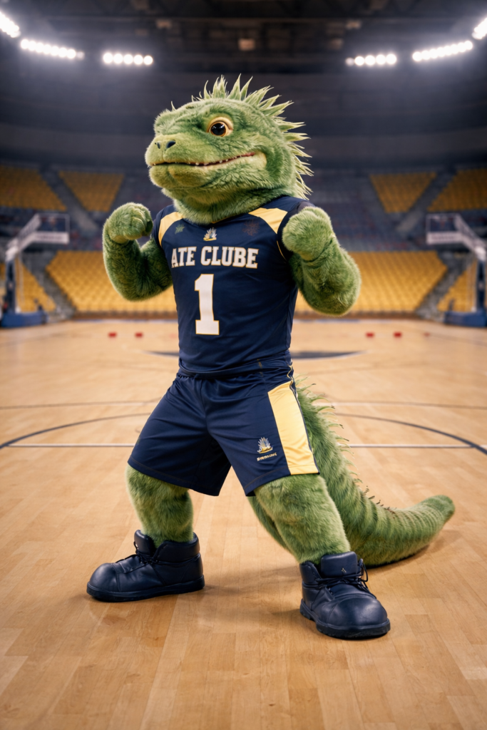 Nosso querido Fred marcou gerações ao circular pelo Clube e animar o dia a dia dos associados. Com seu porte imponente e sangue-frio estratégico, a iguana representa atletas focados, resistentes e prontos para qualquer desafio.