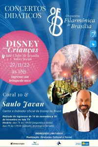 Neste domingo (27), o Iate Clube de Brasília realizará o concerto da Orquestra Filarmônica de Brasília, com o tema “Disney para crianças”, que contará com melodias marcantes de filmes da