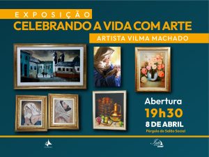 Às 19h30 do dia 8 de abril, na Pérgola do Salão Social, a Diretoria Cultural organiza o vernissage da exposição individual “Celebrando a vida com arte”, que reúne diversos trabalhos