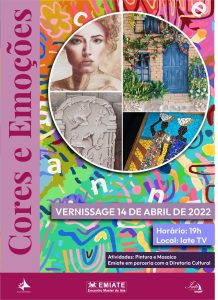 A partir das 19h do dia 14 de abril, o Emiate realizará, no Iate TV, o vernissage da exposição “Cores e Emoções”, que reúne trabalhos produzidos pelos alunos dos cursos
