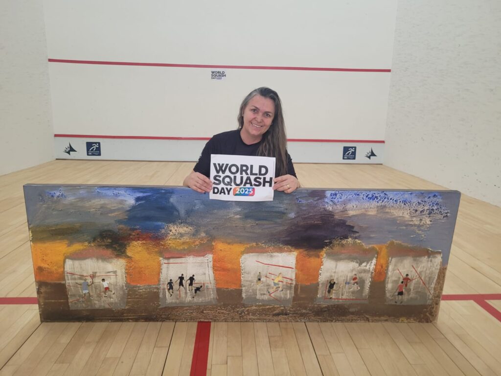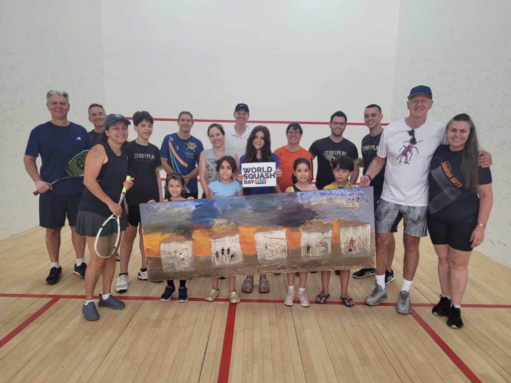 Durante a celebração, foi entregue uma obra de arte ao espaço, criada pelo associado Paulo Araújo. A vice-diretoria agradece ao associado pelo presente e reforça a importância de eventos como esse para fortalecer a comunidade e divulgar o squash para todas as idades.
