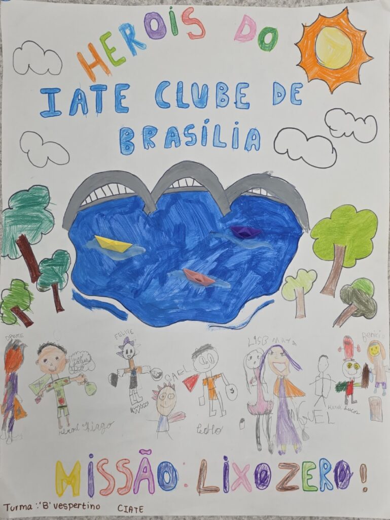 Com o planeta Terra e o Lago Paranoá no centro, lixeiras de reciclagem, colagens e diferentes texturas de tinta, as crianças do Centro Infantojuvenil do Iate (Ciate) entraram na campanha “Lugar de lixo é no lixo” do Clube.