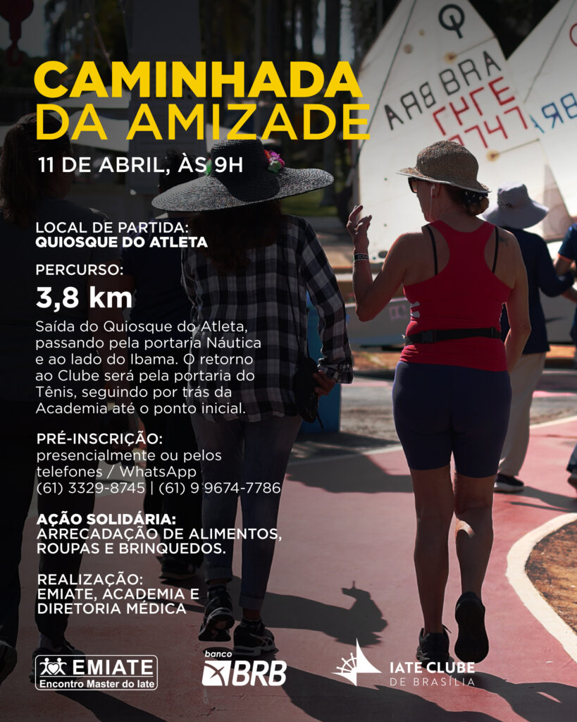No dia 11 de abril, o Emiate, a Academia e a Diretoria Médica irão promover a Caminhada da Amizade. O ponto de encontro será no Quiosque do Atleta, às 9h.