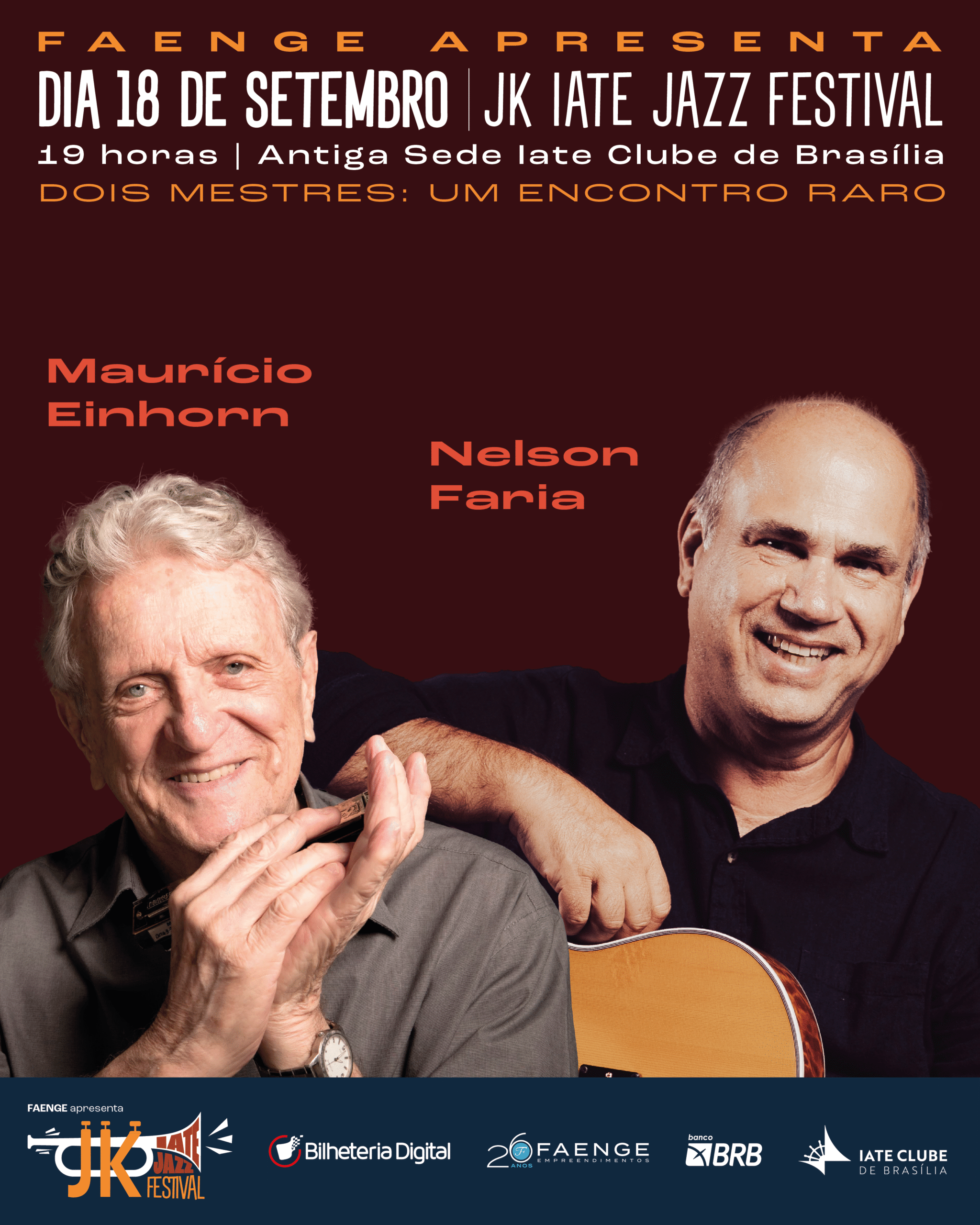 O lirismo da gaita de Mauricio Einhorn encontra a sofisticação do violão de Nelson Faria. Esse encontro raro da música brasileira vai ocorrer nesta quinta-feira, 18 de outubro, na Antiga Sede do Iate Clube de Brasília, a partir das 19h. Os ingressos estão à venda na Bilheteria Digital ou na Secretaria Social do Clube.