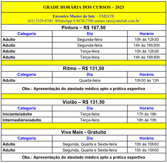 Telefone: (61) 3329-8715 ou secretaria1@iatebsb.com.br Segunda-feira à sexta-feira, das 8h às 18h; Sábados, domingos e feriados, das 8h às 15h ou no whatsapp abaixo: