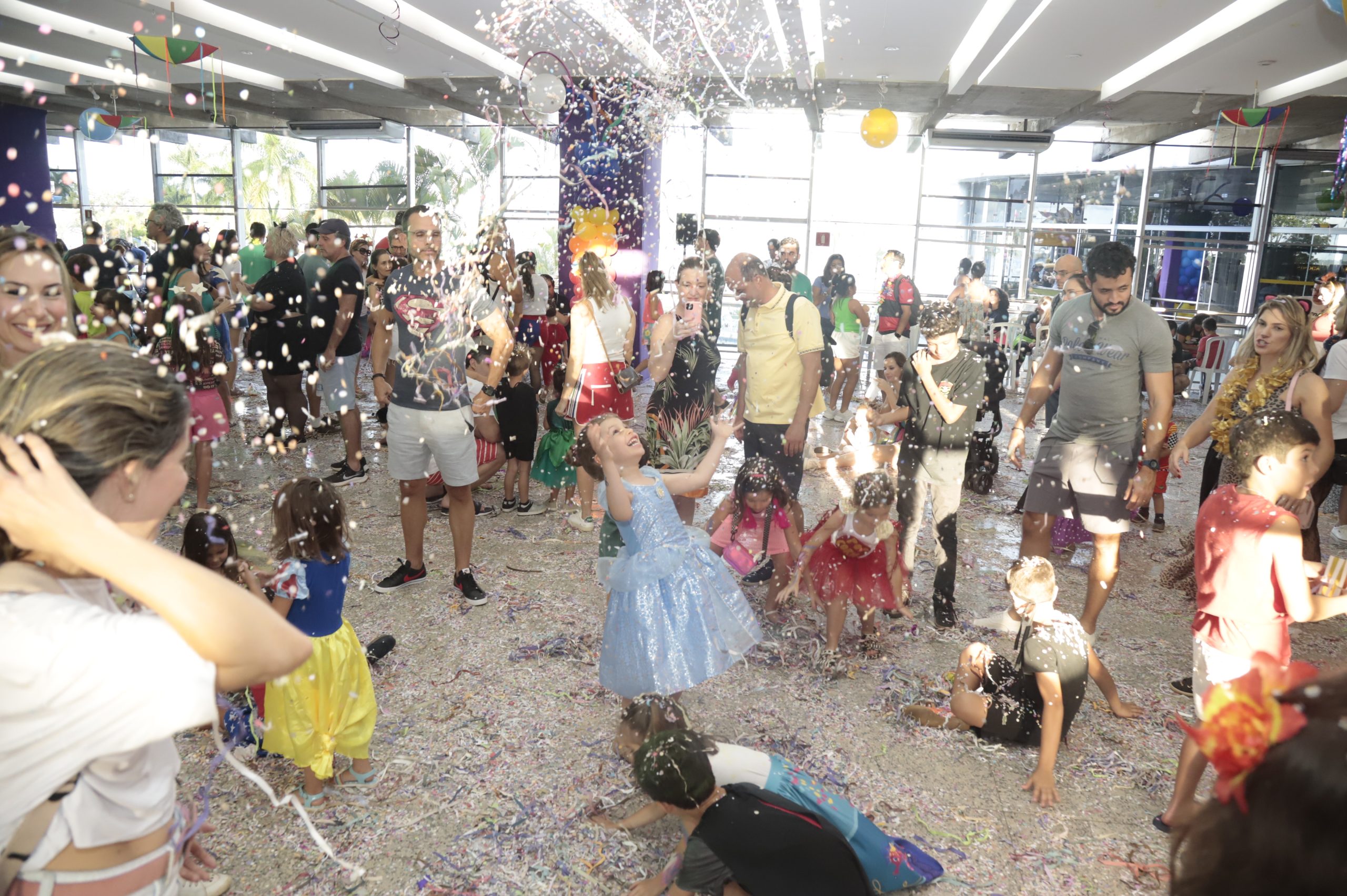 As crianças vieram inspiradas com fantasias pra lá de diferentes, como princesas, super–heróis, ETs, a amada personagem Wandinha, animaizinhos e muito mais. Os papais e as mamães fizeram companhia usando vários apetrechos.