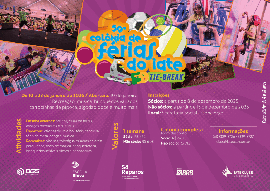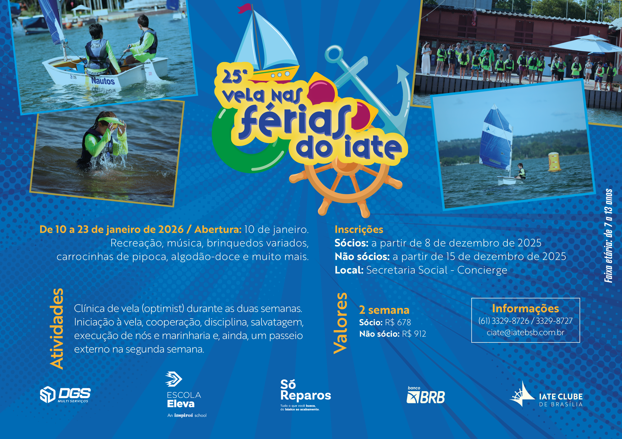 De 10 a 23 de janeiro de 2026, o Iate Clube de Brasília será palco de muita diversão, esporte e aprendizado com a 59ª Colônia de Férias e a 25ª Vela nas Férias.